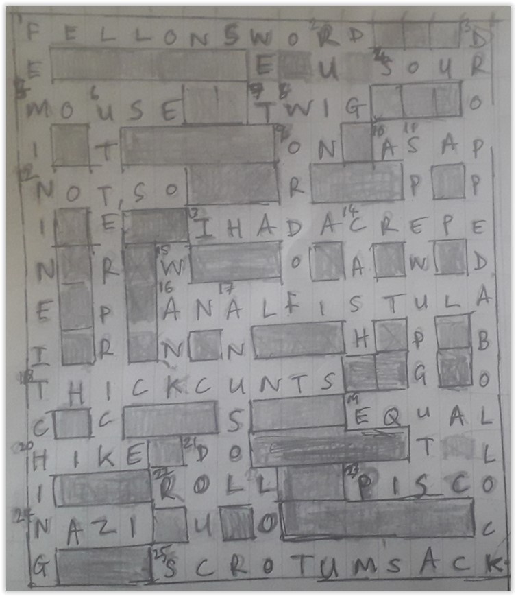 Stuck to a slab of Kendal Mint Cake in the latest delivery from the Red Cross, was a partially solved solution to the crossword set on 8th Sept [https://dickiewhitesdiary.com/2022/09/08/8th-sept-its-only-words-and-words-are-all-i-haveto-take-your-heart-away/]. As such, it is the resounding winner.